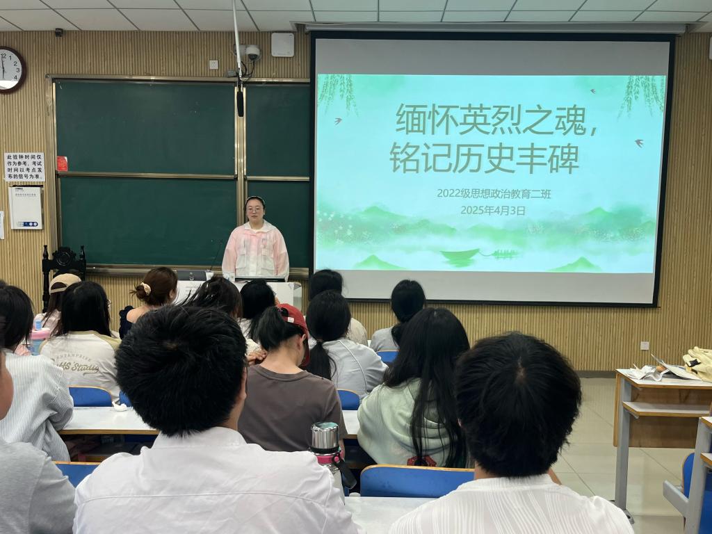 为缅怀革命先烈、弘扬爱国主义精神,4月3日上午,永利集团官网2022级思想政治教育二班在社科楼515教室召开“缅怀英烈之魂,铭记历史丰碑”主题班会。永利集团官网2022级思想政治教育二班全体成员共同参与此次班会。会议由班长李佳音主持。