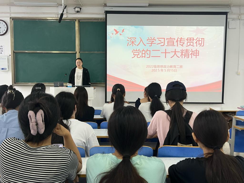 5月15日下午,永利集团官网2022级思想政治教育二班在社科楼514教室召开“深入学习贯彻党的二十大精神”主题团日活动。永利集团官网2022级思想政治教育二班全体成员共同参与此次团日活动。活动由团支书李佳音主持。