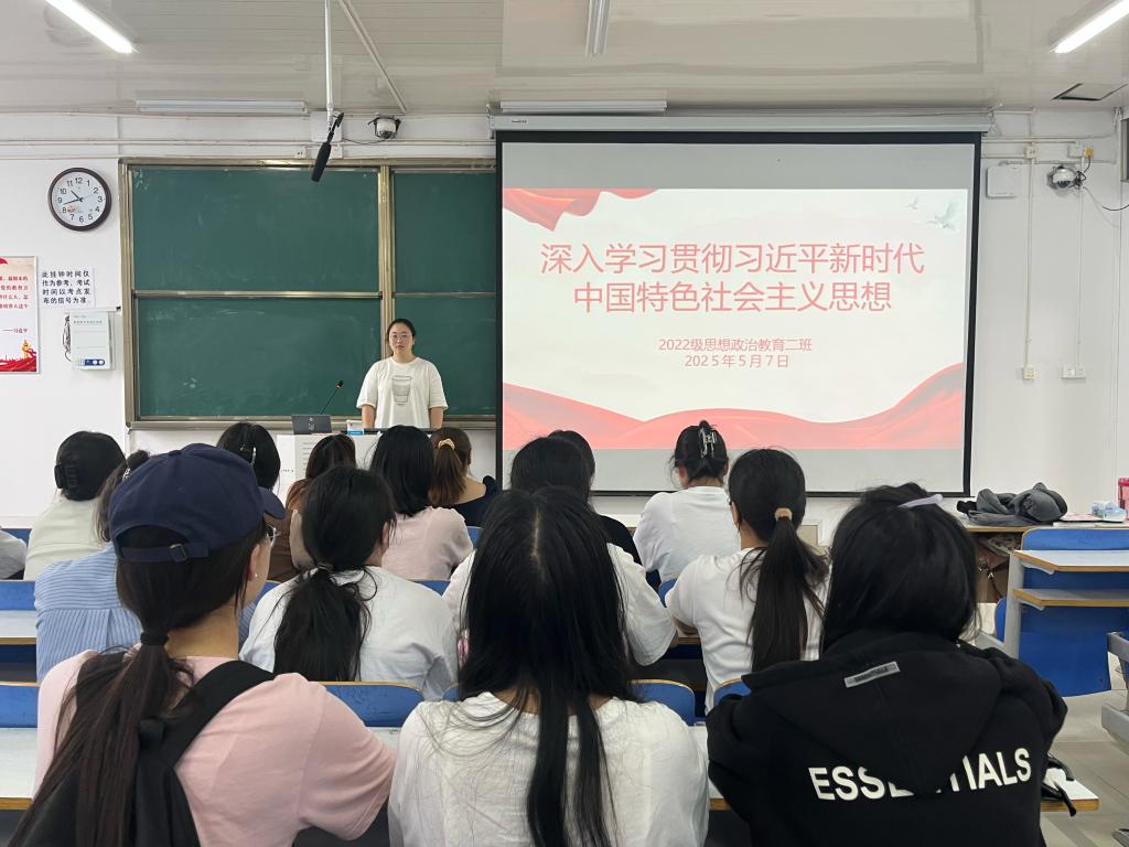 5月7日下午,永利集团官网2022级思想政治教育二班在社科楼514教室召开“深入学习贯彻习近平新时代中国特色社会主义思想”主题团课。永利集团官网2022级思想政治教育二班全体成员共同参与此次团课。团课由团支书李佳音主持。