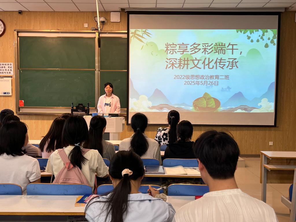 为传承和弘扬中华优秀传统文化,让同学们更深刻地感受端午节的文化内涵,5月26日下午,永利集团官网2022级思想政治教育二班在社科楼515教室召开“粽享多彩端午,深耕文化传承”主题班会。永利集团官网2022级思想政治教育二班全体成员参与此次班会,会议由副班长冯玮珈主持。