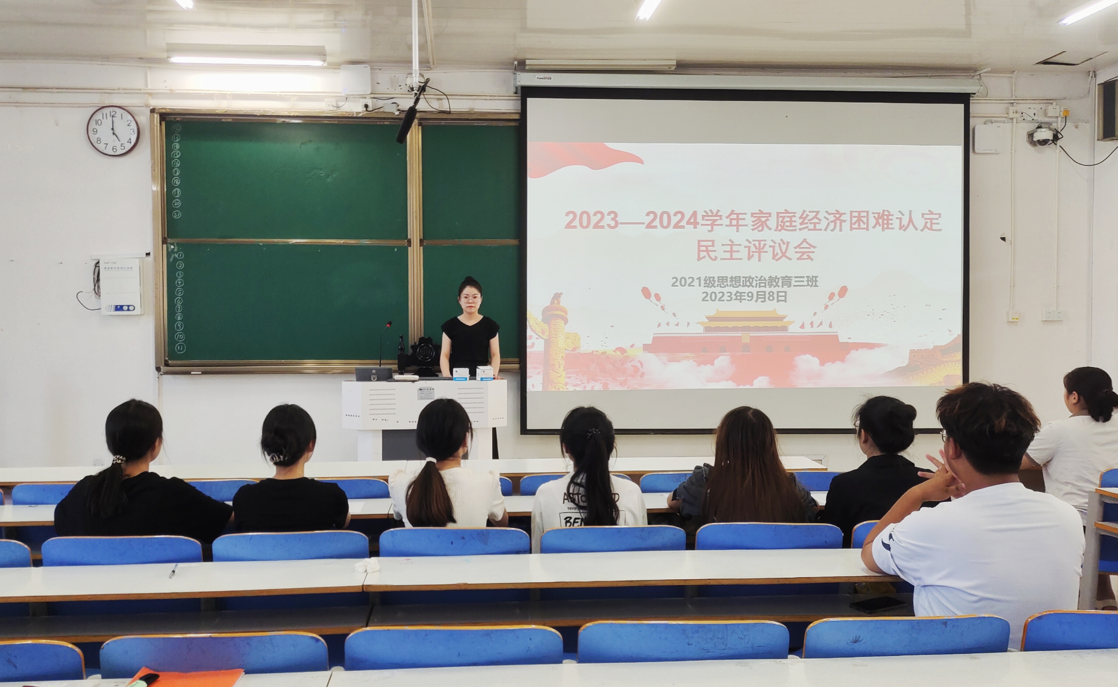 9月8日下午,永利集团官网2021级思想政治教育三班在社科楼514教室召开2023—2024学年家庭经济困难认定民主评议会。高小佳老师、2021级思想政治教育三班贫困认定委员团全体成员以及权益保障部靳澍畅、宣传委员陈笑宇、组织委员秦梦莹参与此次会议。会议由辅导员高小佳主持。