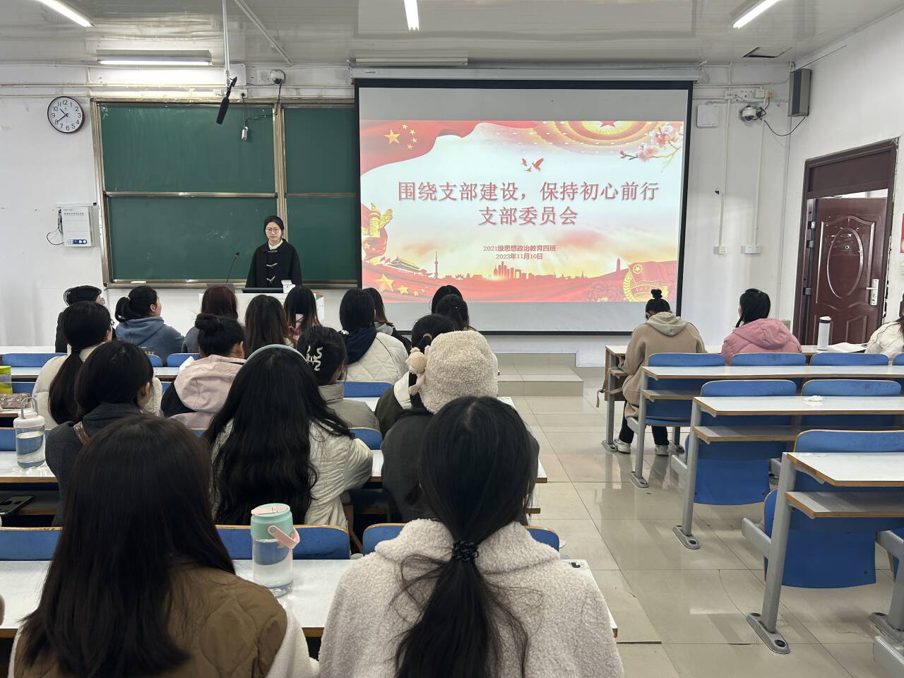 11月10日下午,永利集团官网2021级思想政治教育四班在社科楼514教室开展“围绕支部建设,保持初心前行”支部委员会。2021级思想政治教育四班全体团员参与本次会议。会议由团支书刘珂含主持。