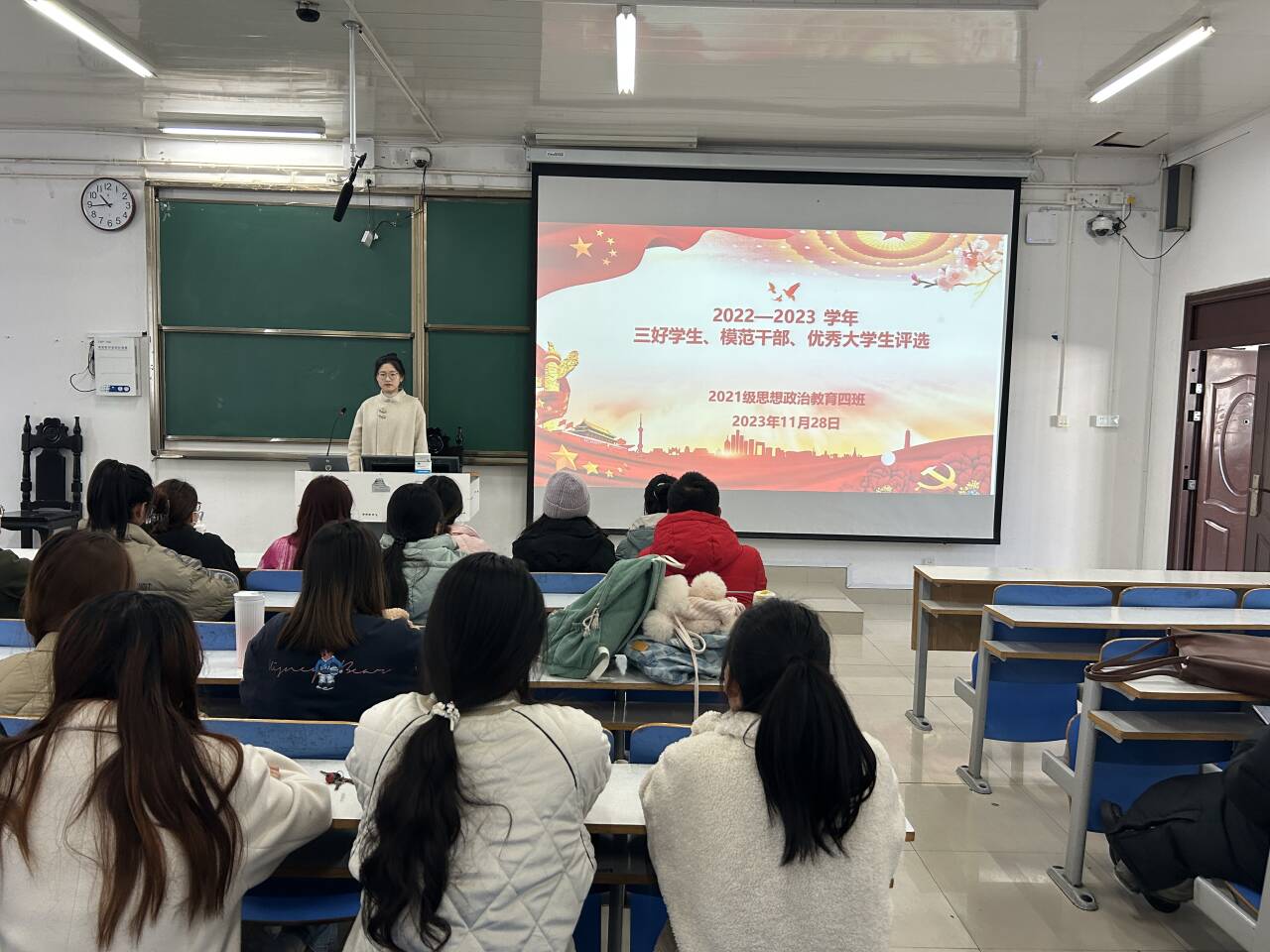 11月28日上午,永利集团官网2021级思想政治教育四班在社科楼515教室开展2022-2023学年“三好学生、模范干部、优秀大学生”评选会。思想政治教育四班全体同学参加本次会议。会议由团支书刘珂含主持。