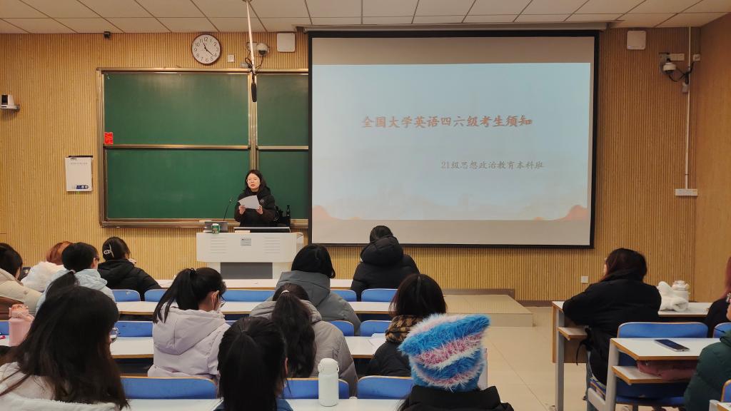 12月14日上午,永利集团官网2021级思想政治教育全体成员在社科楼514教室召开“全国大学英语四六级考生须知”班会。辅导员高小佳及2021级思想政治教育三班、四班全体成员参加本次班会。班会由辅导员高小佳主持。