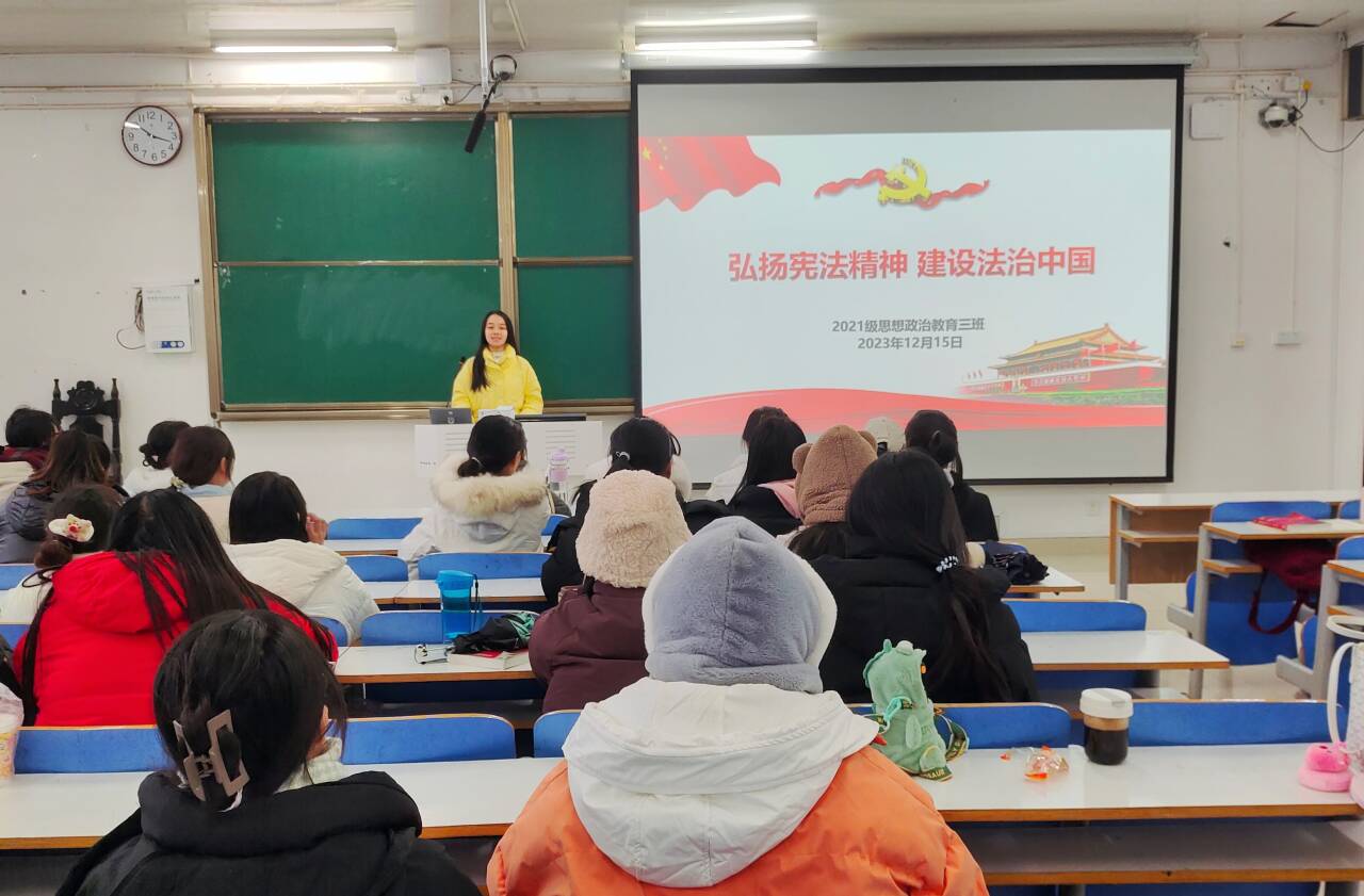 12月15日下午,永利集团官网2021级思想政治教育三班在社科楼514召开“弘扬宪法精神,建设法治中国”主题团课。永利集团官网2021级思想政治教育三班全体团员参与此次会议。团课由团支书王岚霄主持。