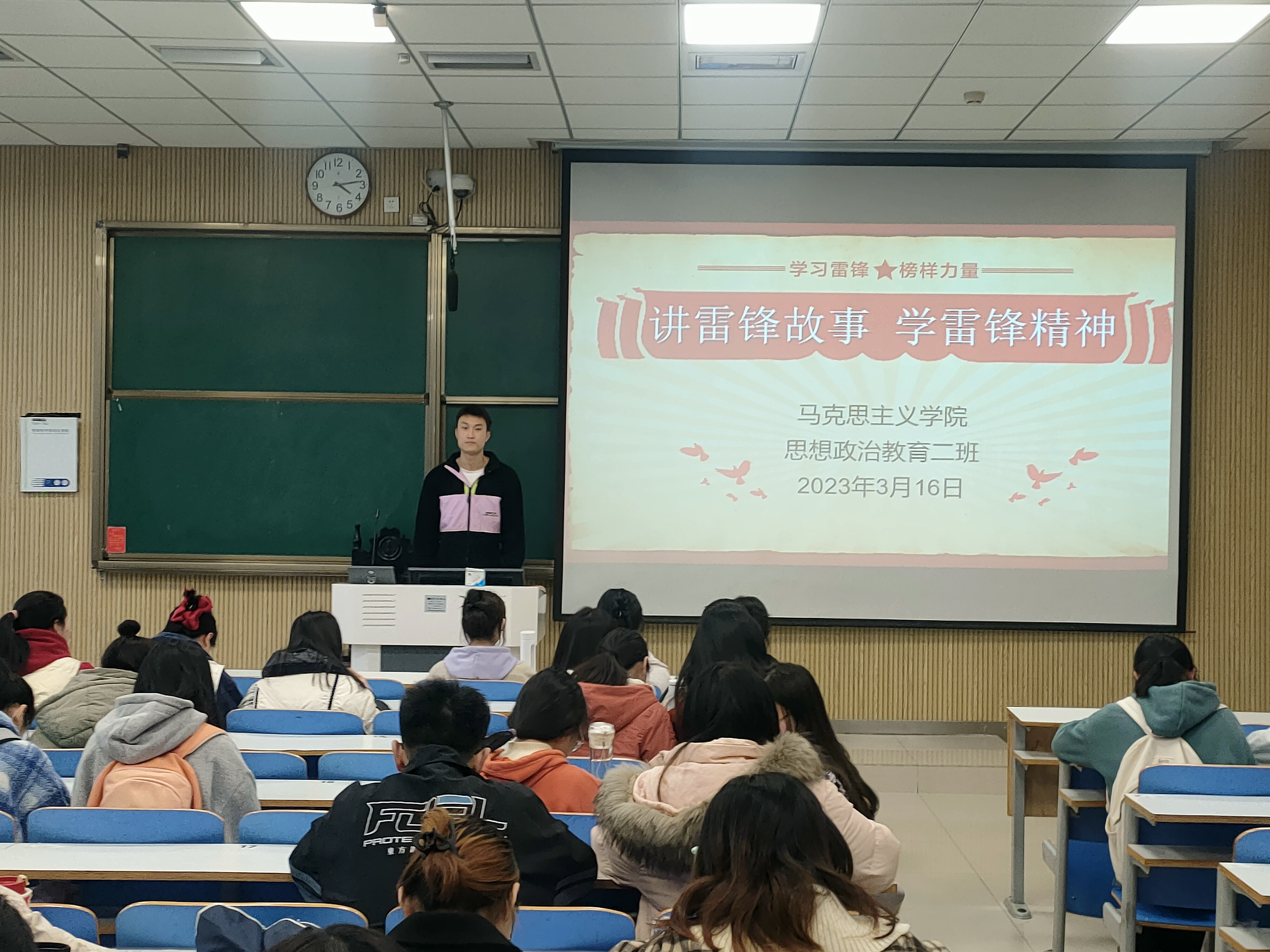 为引导我班团员积极学习并践行雷锋精神,3月16日下午,永利集团官网2020级思想政治教育二班、定向二班团支部在社科楼515教室开展“讲雷锋故事,学雷锋精神”主题团课。二班、定向二班全体团员共同参与本次团课。团课由团支书陈宇航主持并讲授。