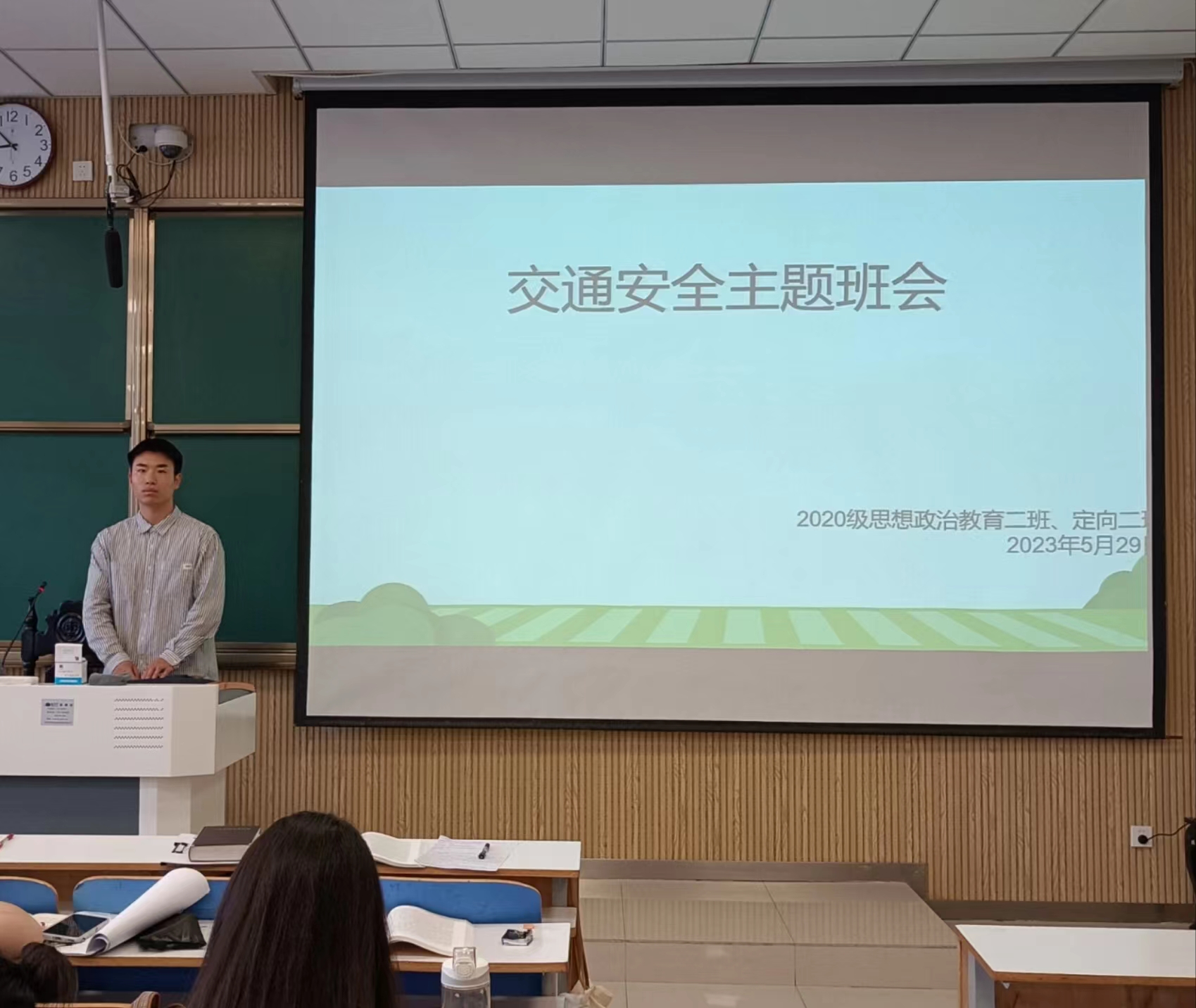 为进一步加强交通安全主题教育,增强同学们的交通安全意识,5月29日下午,永利集团官网2020级思想政治教育二班、定向二班在社科楼514教室召开交通安全主题班会。二班、定向二班全体同学共同参会。会议由班长高红凯主持。