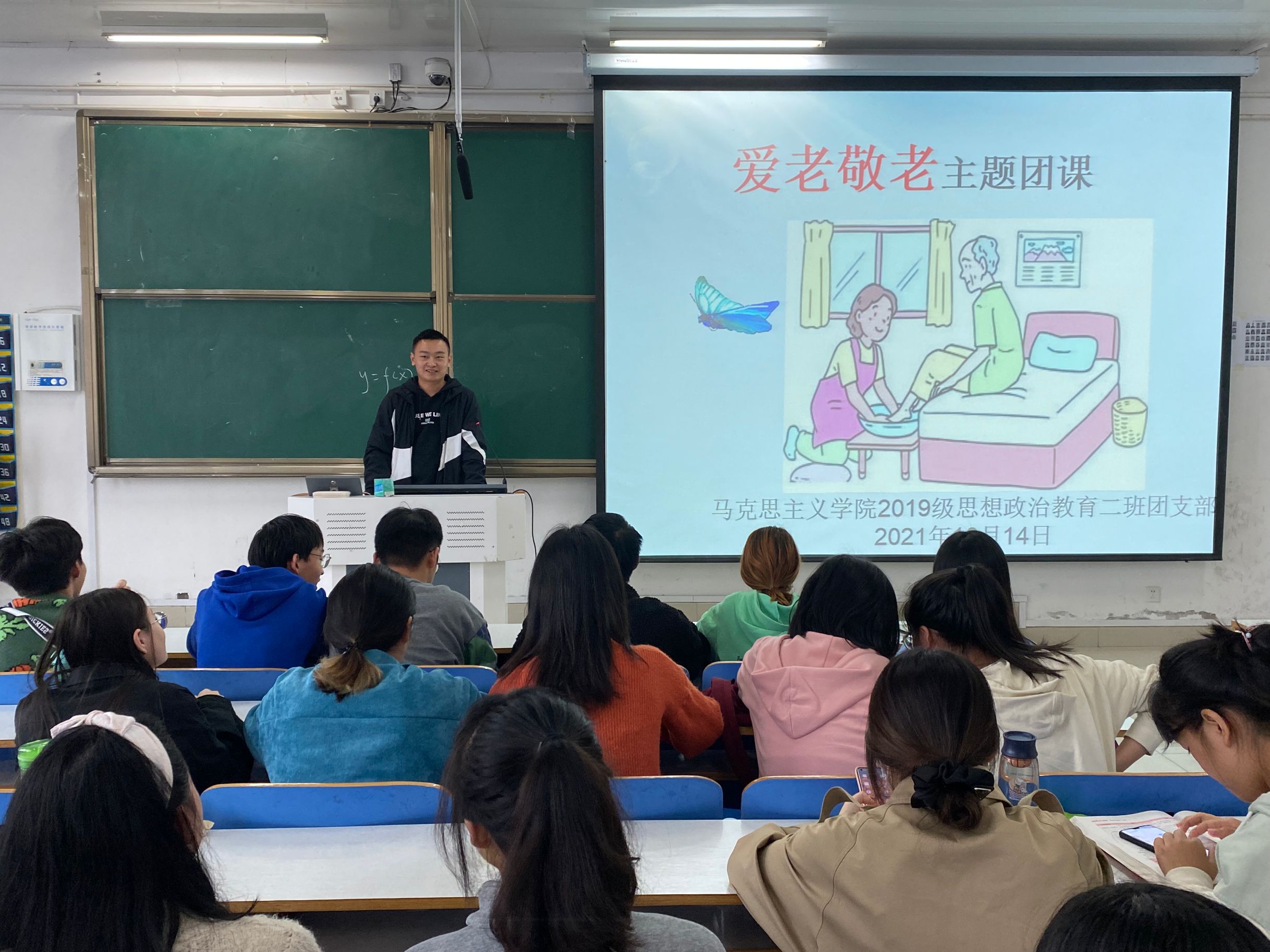 九九重阳至,浓浓敬老情。10月14日上午,永利集团官网2019级思想政治教育二班于社科楼516教室召开“爱老敬老”主题团课。2019级思想政治教育二班全体学生共同参会。会议由卫生委员刘鹏主持。