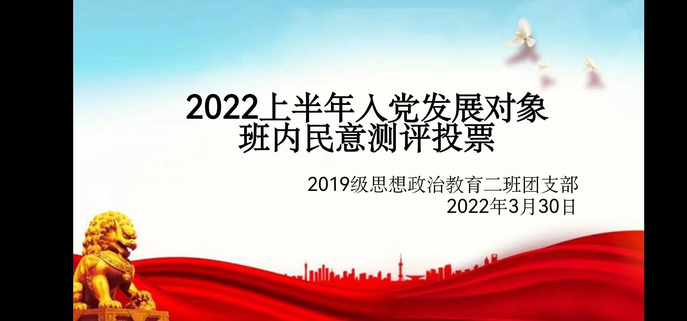 3月30日下午,永利集团官网2019级思想政治教育二班团支部“ 2022年上半年入党发展对象班内民意测评投票”活动于社科楼514教室顺利开展。2019级思想政治教育二班全体成员共同参会。本次会议由团支书孙雅娴主持。