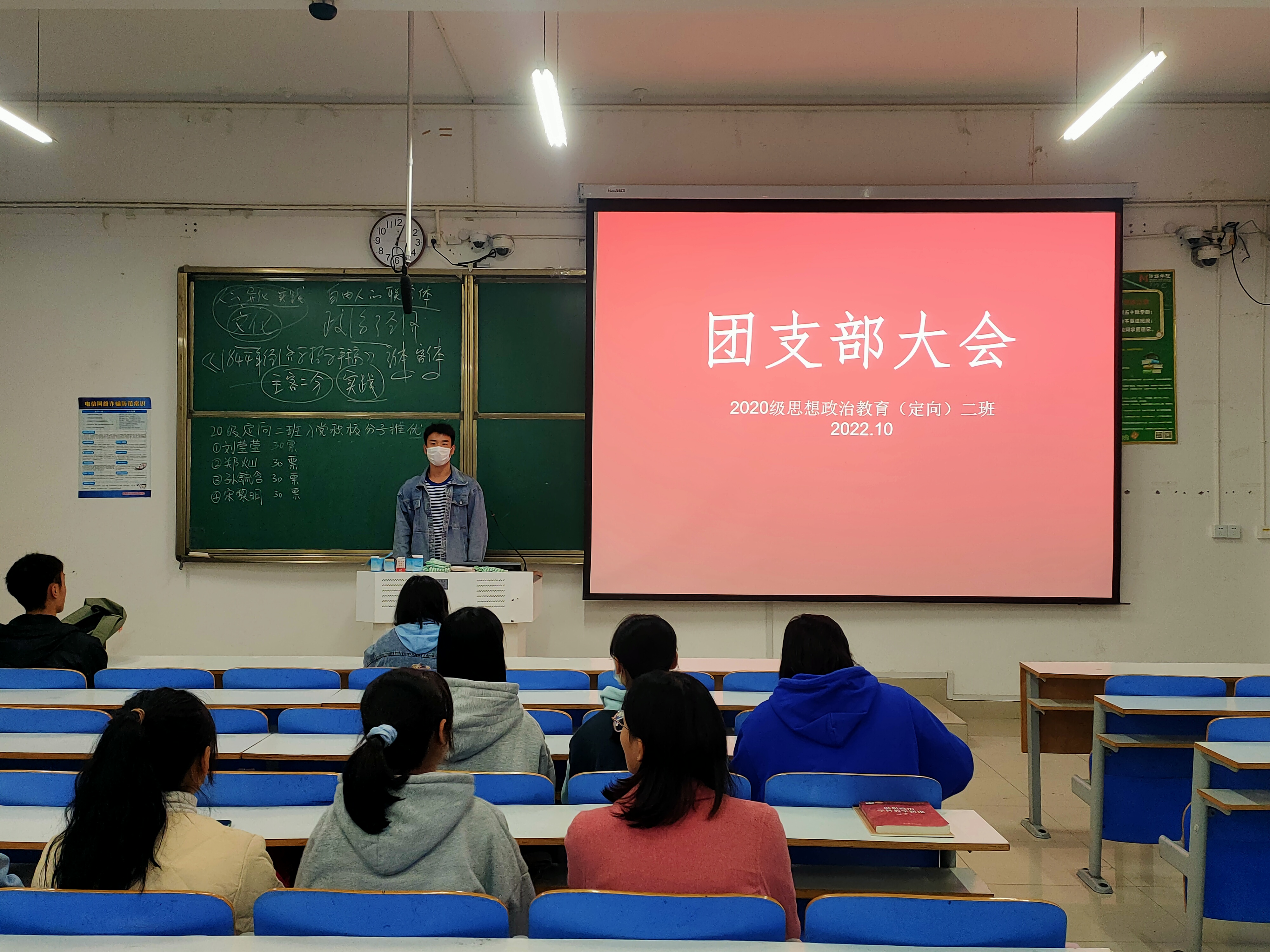 10月10日下午,永利集团官网2020级思想政治教育定向二班团支部在社科楼324教室召开2022年下半年入党积极分子推优大会。我支部全体团员参与会议。大会由班长高红凯主持。