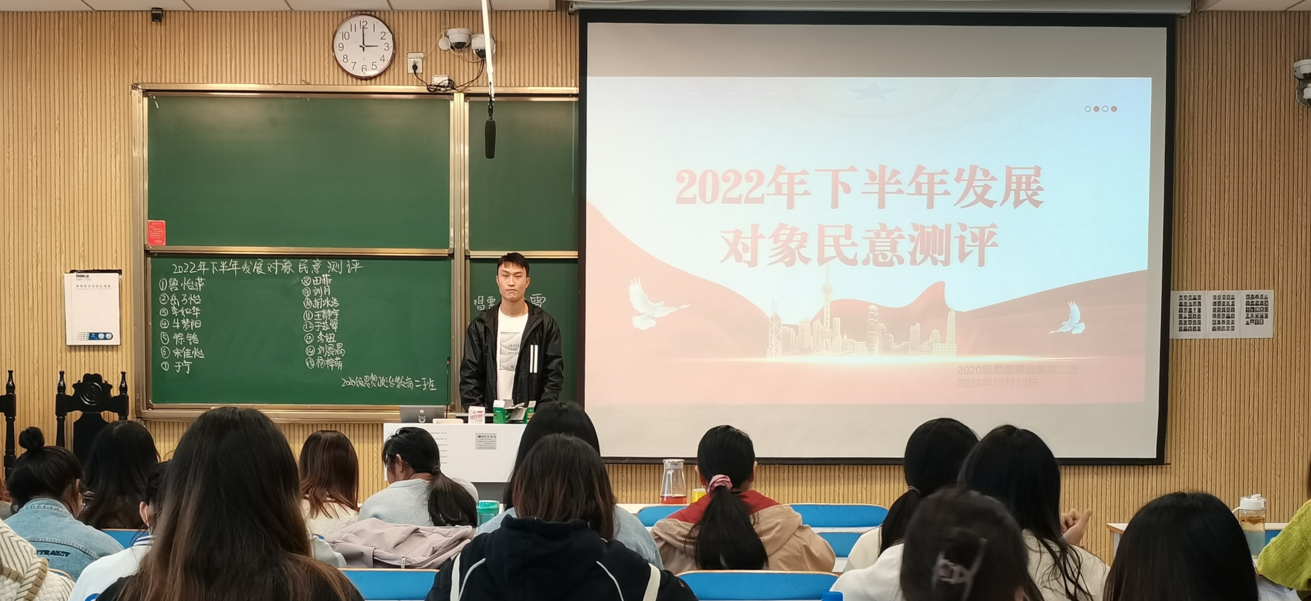 为进一步发展壮大党员队伍,为党支部注入新的活力,10月13日下午,永利集团官网2020级思想政治教育二班在社科楼515教室召开2022年下半年党员计划发展对象班级民意测评会。2020级思想政治教育二班全体团员共同参加本次会议。会议由团支书陈宇航主持。