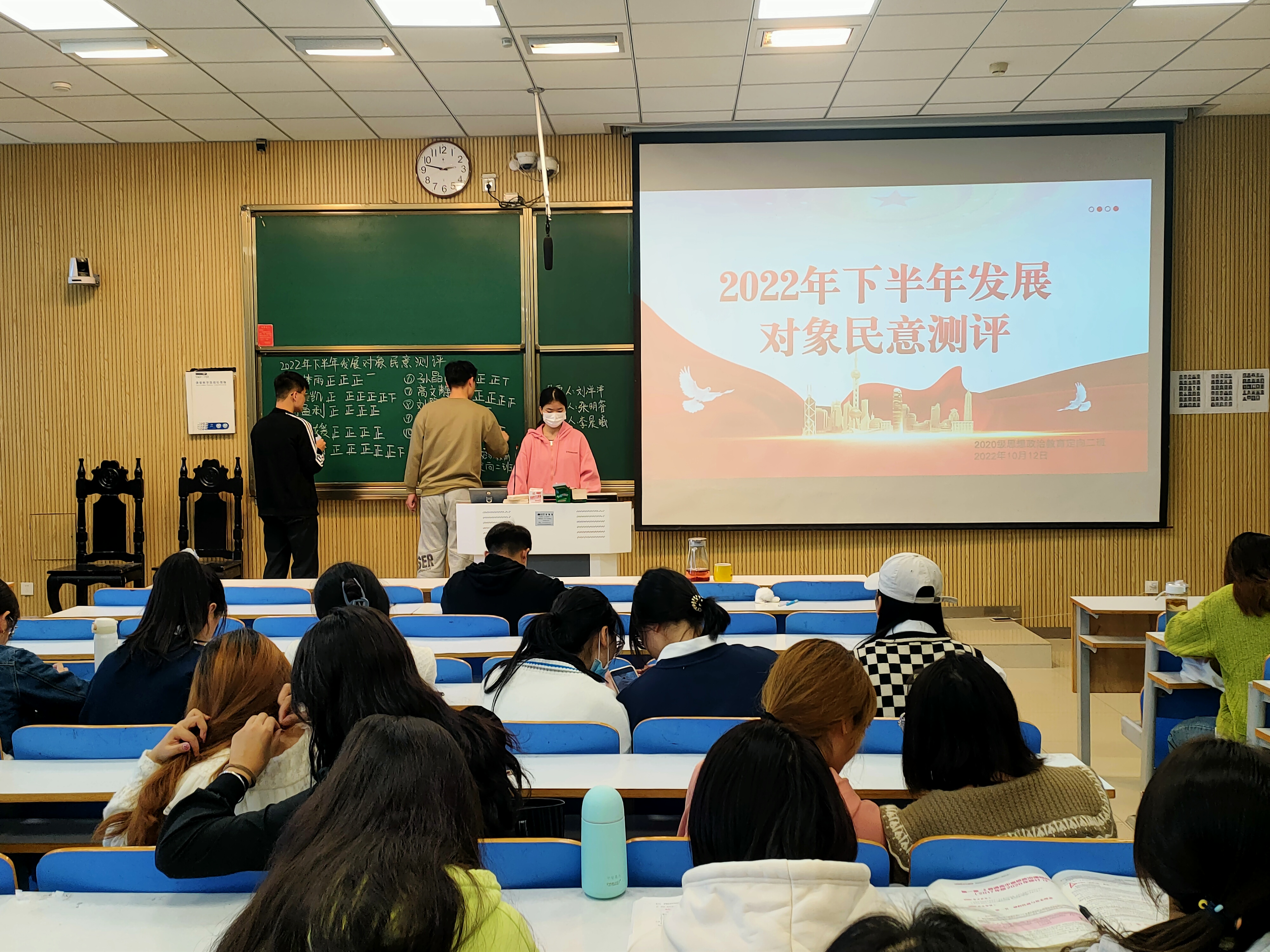 10月13日下午,永利集团官网2020级思想政治教育定向二班在社科楼515教室召开2022年下半年党员发展对象民意测评会。定向二班全体同学共同参与此次会议。会议由团支书李晨曦主持。