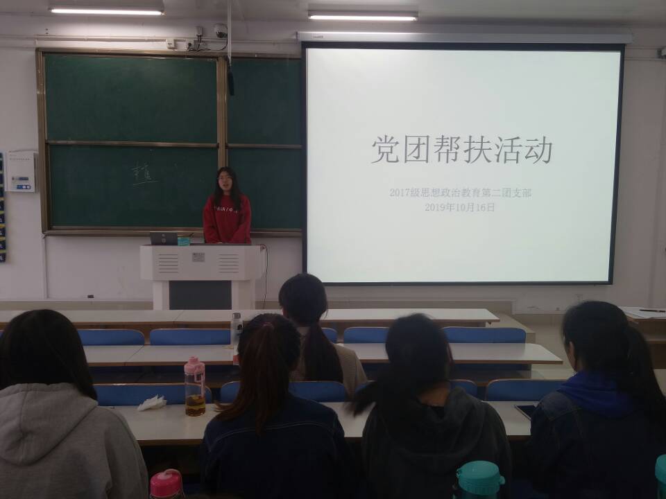 10月16日上午,永利集团官网2017级第二团支部在社科楼516教室顺利开展党团帮扶活动。预备党员赵晓童、王慧芳、2017级第二团支部全体成员参加本次活动。活动由组织委员王泽鑫主持。