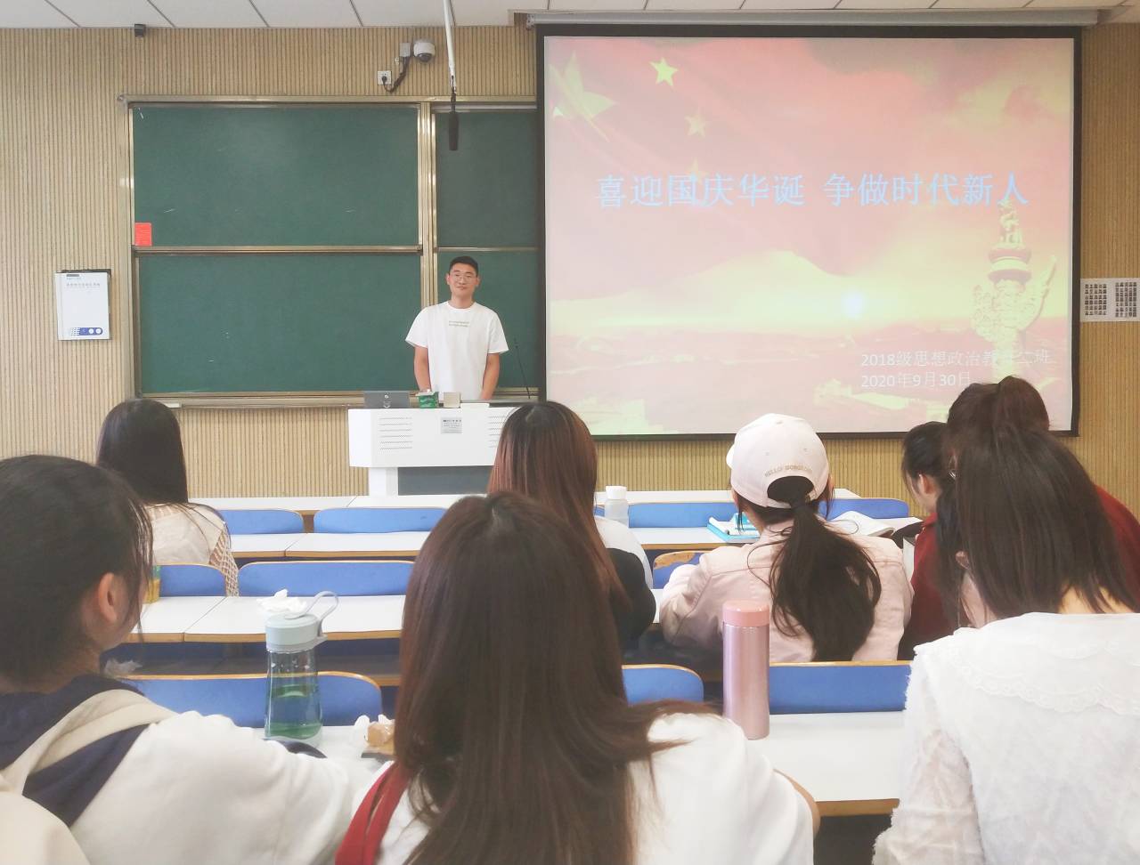 为纪念祖国七十一年华诞,激发同学们的爱国奉献精神,9月29日——10月8日,永利集团官网2018级思想政治教育二班开展了“弘扬核心价值观,展现青年担当”建国七十一周年主题团日活动。永利集团官网2018级思想政治教育二班全体成员共同参加了本次活动。活动由班长杨康、团支书黄子晋主持。
