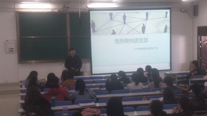 2018年10月29日,2016级思想政治教育二班在社科楼516召开“党员帮扶团支部”活动,邀请到2015级思想政治教育二班李栓栓进行帮扶活动。本次活动由班长胡云申主持。