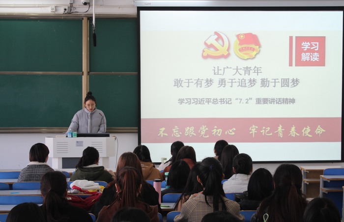首先,李明瑶带领同学们学习了解习近平总书记7·2讲话的内容,“中共中央总书记、国家主席、国家军委主席习近平7月2日在中南海同团中央新一届领导班子集体谈话并发表重要讲话,他强调,青年一代有理想,有本领,有担当,国家就有前途,民族就有希望”。她讲到“7·2讲话,习近平总书记强调了要抓好三个根本性问题:必须把培养社会主义建设者和接班人作为根本任务、把巩固和扩大党执政的青年群众基础作为政治责任、把围绕中心服务大局作为主线,习总书记强调青年工作,抓住的是当下,传承的是根脉,面向的是未来,攸关党和国家前途命运。各级党委要关注关心青少年成长,为他们成长成才、施展才华创造良好条件。各级党委要拿出极大精力抓青年工作、抓共青团工作,切实尽到领导责任”。听完习总书记的讲话,同学们感受到作为一名青年的自豪感与责任感,感受到习近平总书记对青年所寄予的希望,定会以坚定的信念指引自身,不忘初心跟党走,牢记青春使命。(永利集团官网 黄文博 /供稿)