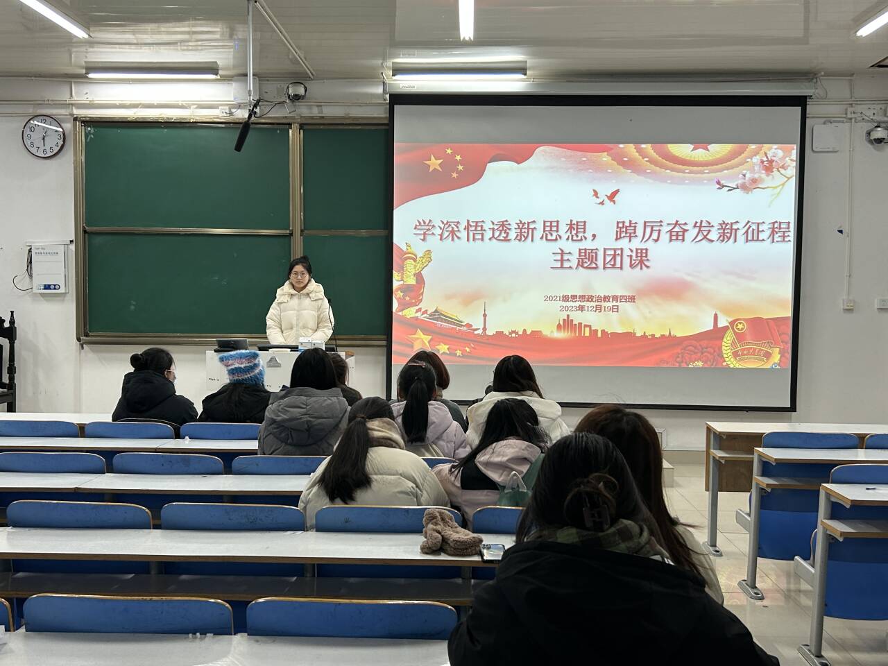 12月19日上午,永利集团官网2021级思想政治教育四班在社科楼514教室开展“学深悟透新思想,踔厉奋发新征程”主题团课。2021级思想政治教育四班全体学生共同参加本次团课。团课由团支书刘珂含主持。