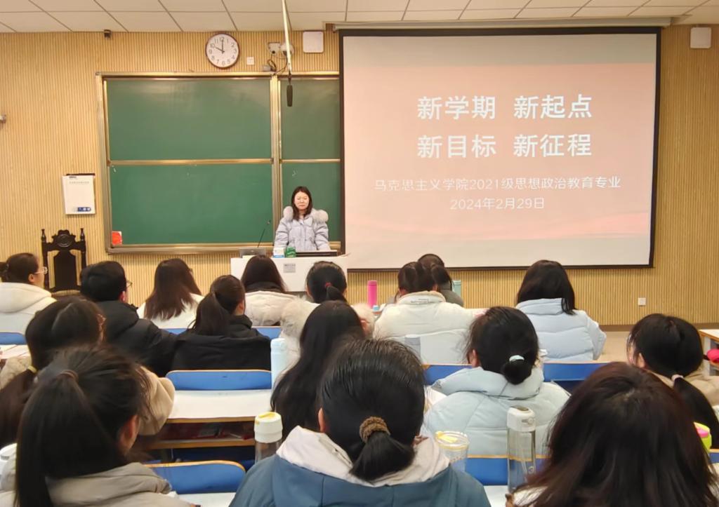 2月29日上午,永利集团官网2021级思想政治教育三班、四班在社科楼515教室召开“新学期,新起点,新目标,新征程”主题班会。辅导员高小佳及2021级思想政治教育全体学生共同参加本次班会。班会由辅导员高小佳主持。
