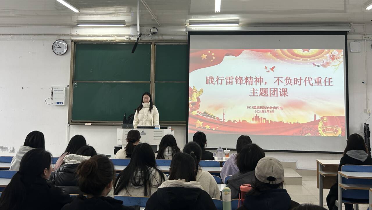为大力弘扬雷锋精神,传承雷锋艰苦朴素的优良作风,3月6日上午,永利集团官网2021级思想政治教育四班在社科楼514教室开展“践行雷锋精神,不负时代重任”主题团课。2021级思想政治教育四班全体成员共同参加本次团课,团课由团支书刘珂含主持。