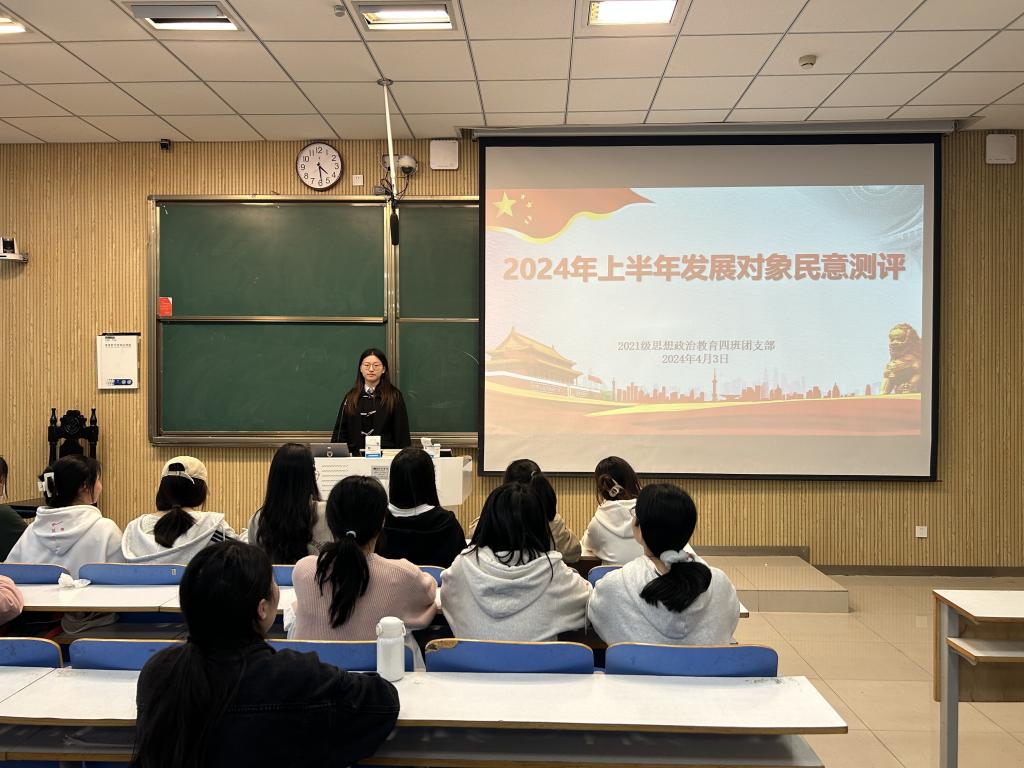 4月3日下午,永利集团官网2021级思想政治教育四班在社科楼514教室召开2024年发展对象民意测评。2021级思想政治教育四班全体团员共同参会。会议由团支书刘珂含主持。