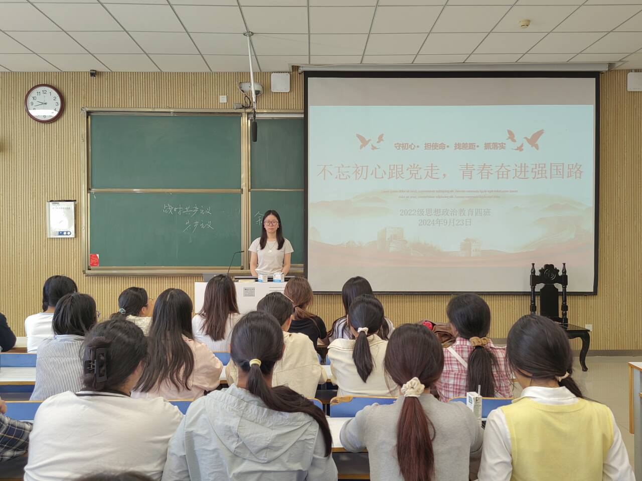 9月23日上午,永利集团官网2022级思想政治教育四班在社科楼515教室组织召开“不忘初心跟党走,青春奋进强国路”主题团课。永利集团官网2022级思想政治教育四班全体成员参与本次团课。本次团课由团支书牛志杰主持。