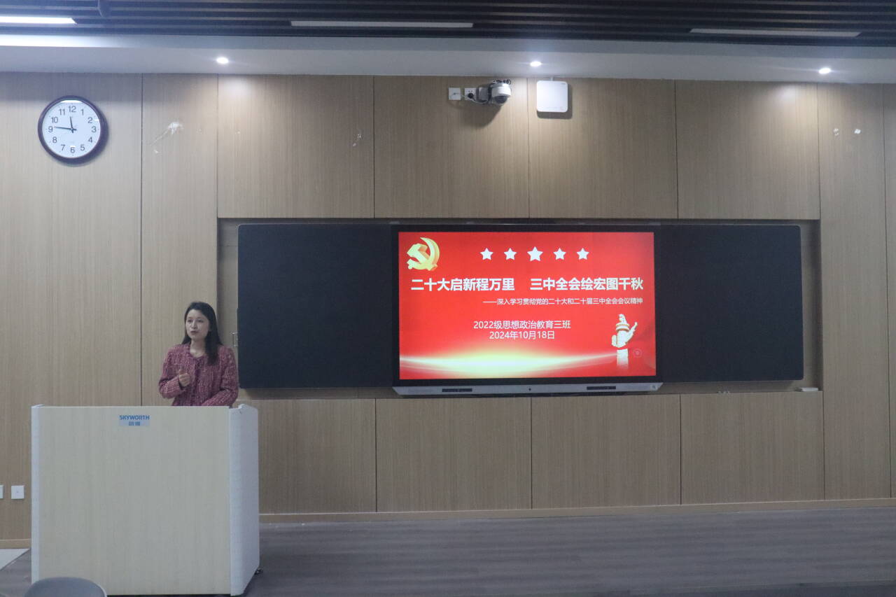 10月18日上午,永利集团官网2022级思想政治教育三班在社科楼516教室召开“二十大启新程万里,三中全会绘宏图千秋”主题团课。永利集团官网2022级思想政治教育三班班主任任婷和三班全体成员共同参加此次团课。团课由任婷主持。