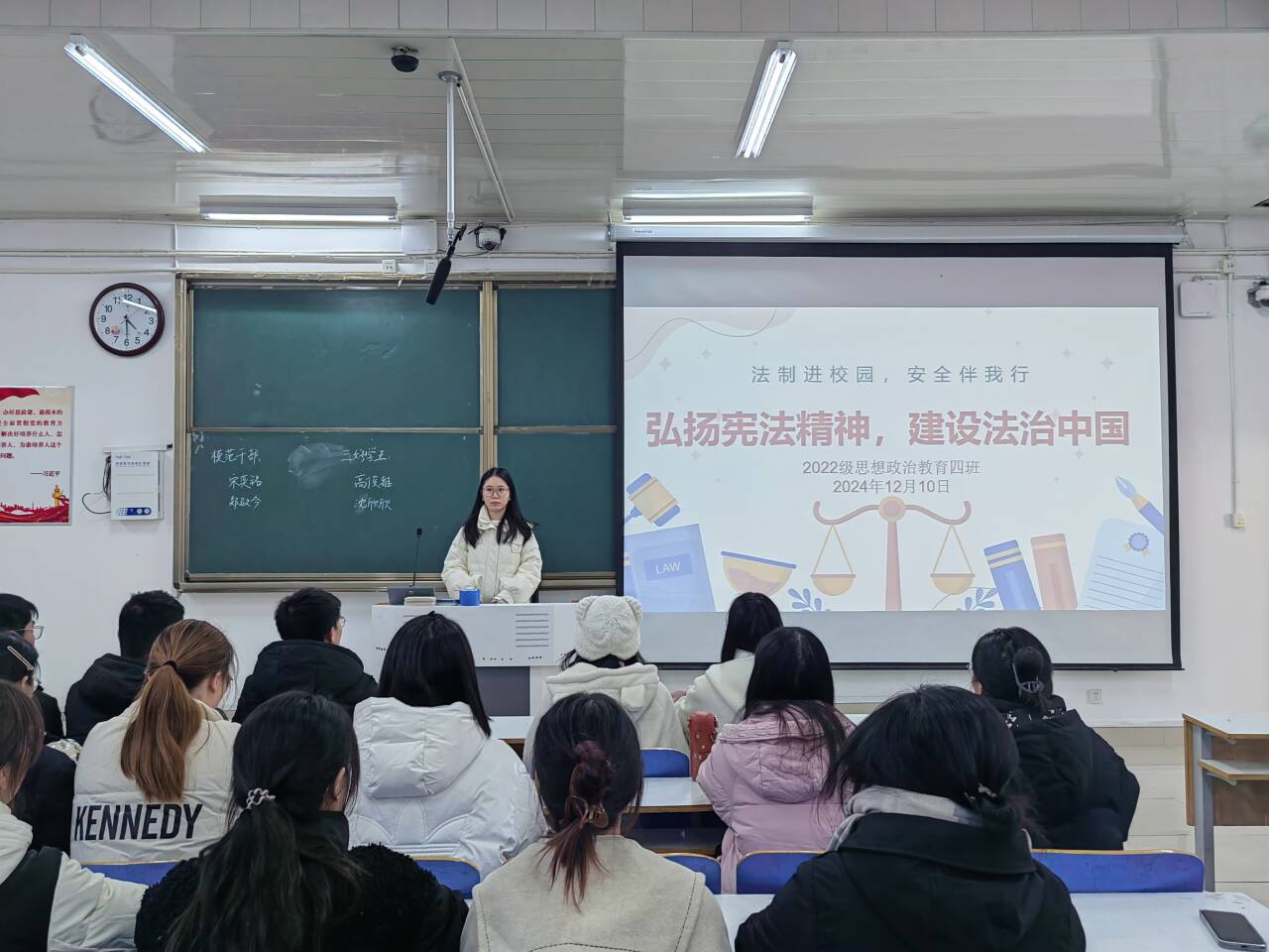 为了加深学生对宪法的认识,引导学生树立正确的法治观念,12月10日上午,永利集团官网2022级思想政治教育四班在社科楼514教室组织召开“弘扬宪法精神,建设法治中国”主题班会。永利集团官网2022级思想政治教育四班全体成员参与本次班会。本次班会由班长牛志杰主持。