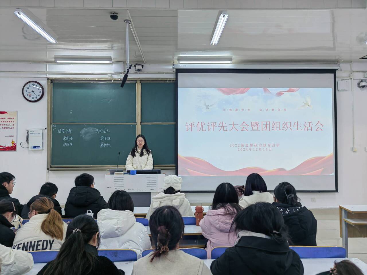 12月14日下午,永利集团官网2022级思想政治教育四班在社科楼514教室组织召开“评优评先大会暨团组织生活会”。永利集团官网2022级思想政治教育四班全体成员参与本次班会。本次班会由班长牛志杰主持。
