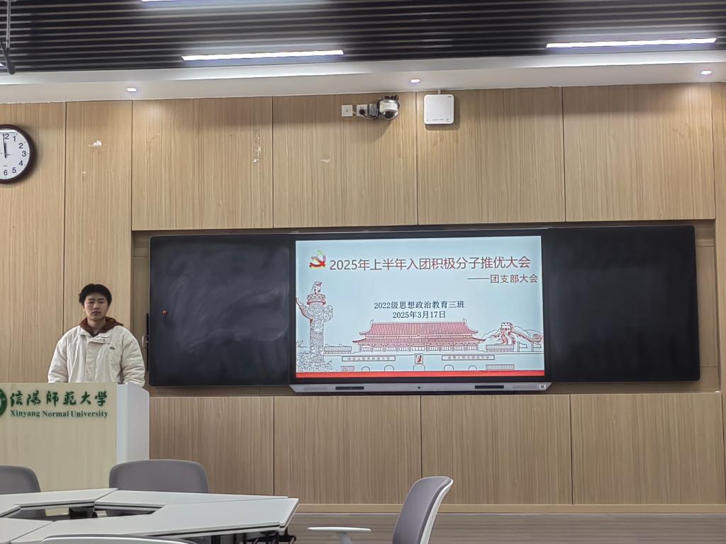 3月17日上午,永利集团官网2022级思想政治教育三班在社科楼516教室召开2025年上半年入团积极分子推优大会。该班班主任任婷与2022级思想政治教育三班全体同学共同参与此次大会。大会由团支书余浩洋主持。