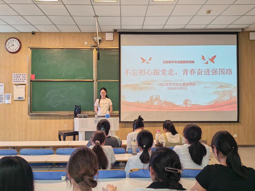 5月6日上午,永利集团官网2022级思想政治教育四班在社科楼515教室组织召开“不忘初心跟党走,青春奋进强国路”主题班会。永利集团官网2022级思想政治教育四班全体成员参与本次班会。本次班会由班长牛志杰主持。