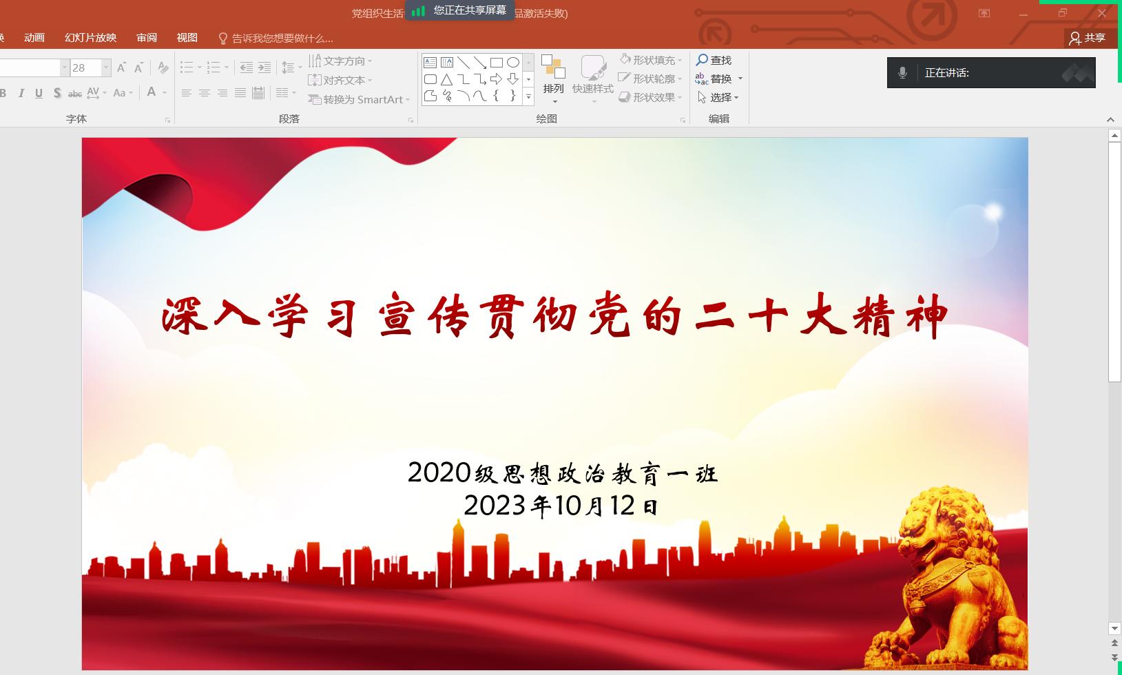10月12日下午,永利集团官网2020级思想政治教育一班在社科楼教室开展“深入学习宣传贯彻党的二十大精神”团支部大会,会议由班长白帅豪主持。