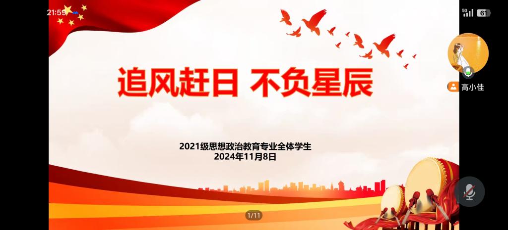 11月8日晚上,永利集团官网2021级思想政治教育专业全体成员在线上召开“追星赶月,不负星辰”主题班会。2021级思想政治教育专业全体成员和辅导员高小佳老师参加本次班会。会议由辅导员高小佳主持。