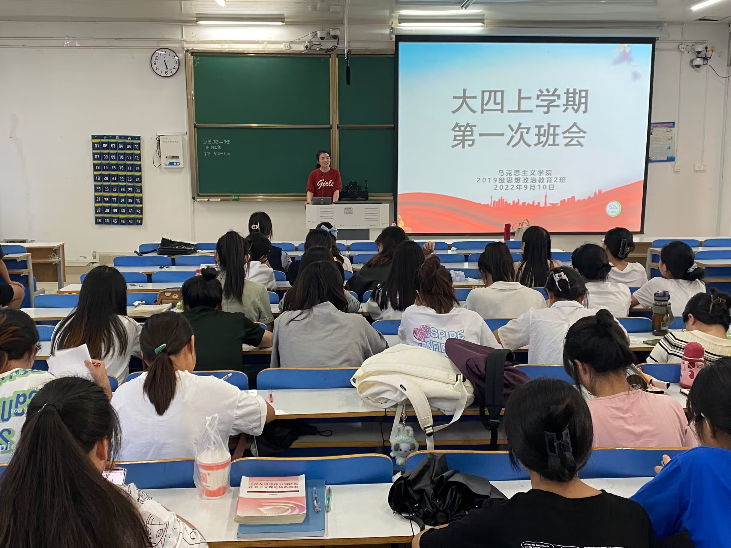 9月10日下午,永利集团官网2019级思想政治教育二班在社科楼514教室召开新学期班级师生座谈会。二班全体同学参与本次班会。辅导员陶青青出席并主持会议。