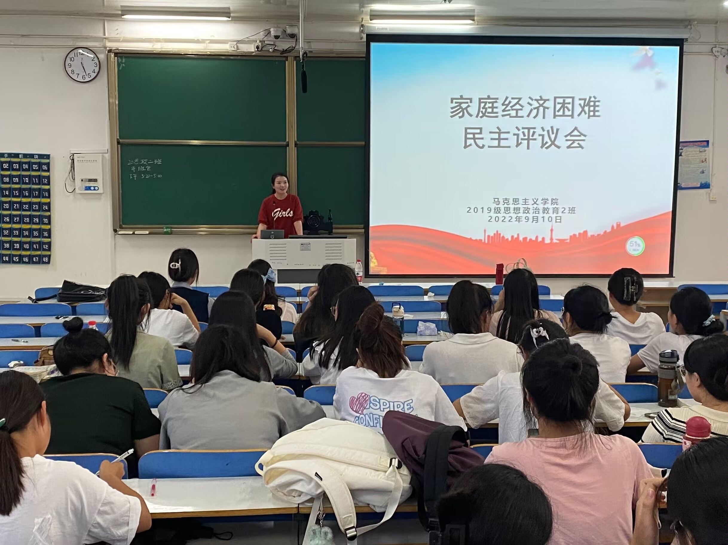 9月10日下午,永利集团官网2019级思想政治教育二班在社科楼514教室召开2022年班级贫困认定民主评议会。班主任陶青青出席会议,评议小组全体成员按时到会,永利集团官网权益保障部监督员全程监督。评议会由班长吕昂主持。